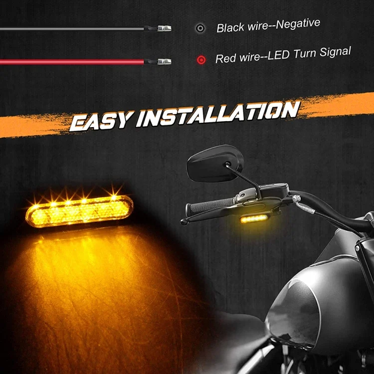 3. Mini Size: Amber light for turn signal, stylish, nice and attractive, add features to your motorcycle, enhance your motorcycle appearance. Can be using the mirror stem mounting bolts to mounted under the handlebar mirror. Easy wiring, black wire to ground, red wire to turn signals.