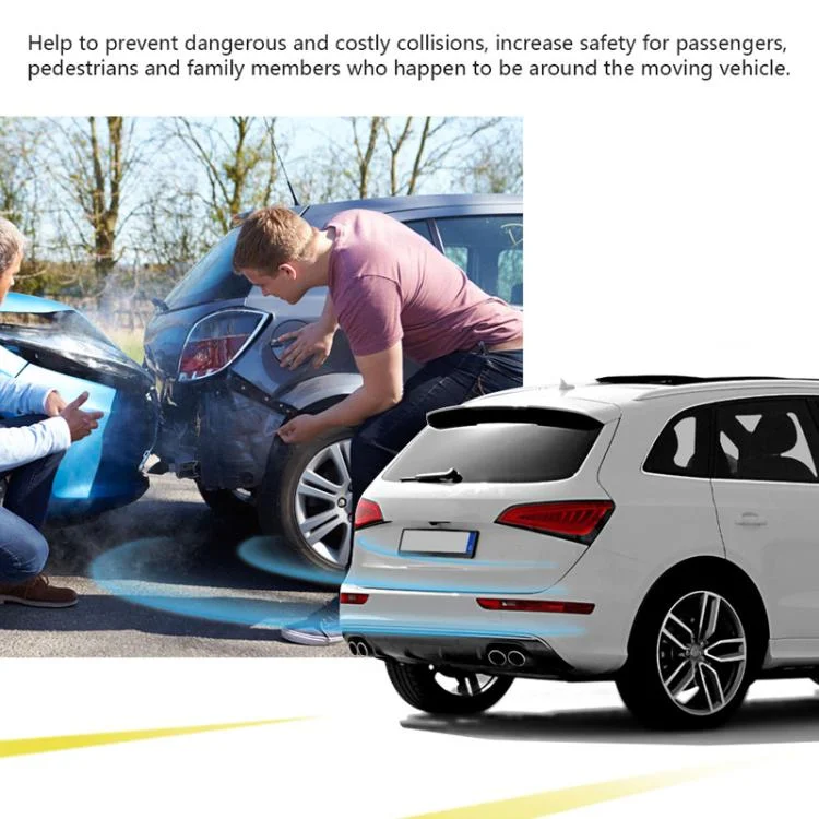 9. Equipped with a 4-sensor system that mounts to the vehicle’s rear bumper for enhanced coverage and detection