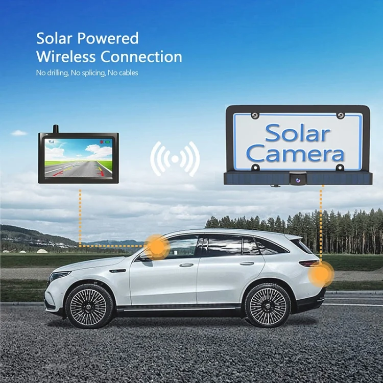 Solar Integrated License Plate Frame Vehicle Camera Wireless Reversing Display