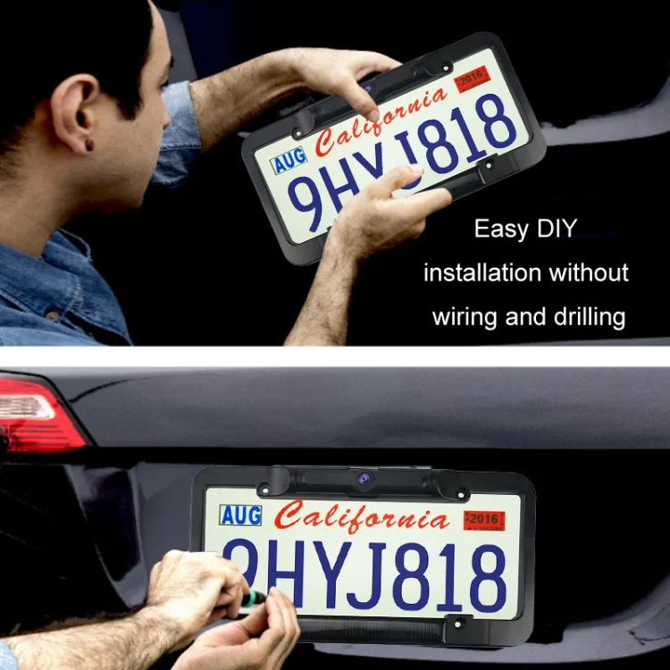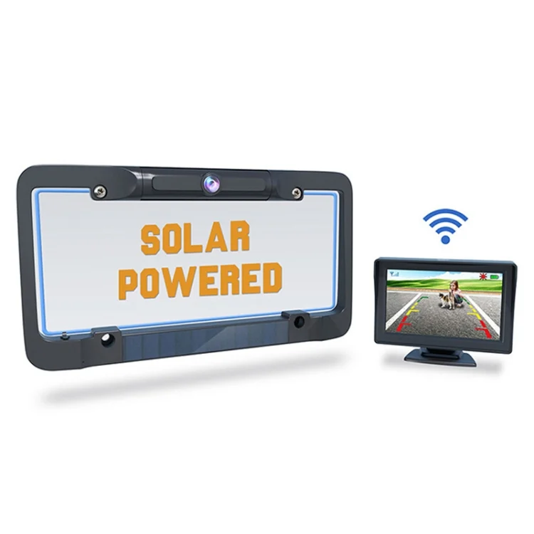 Solar Integrated License Plate Frame Vehicle Camera Wireless Reversing Display