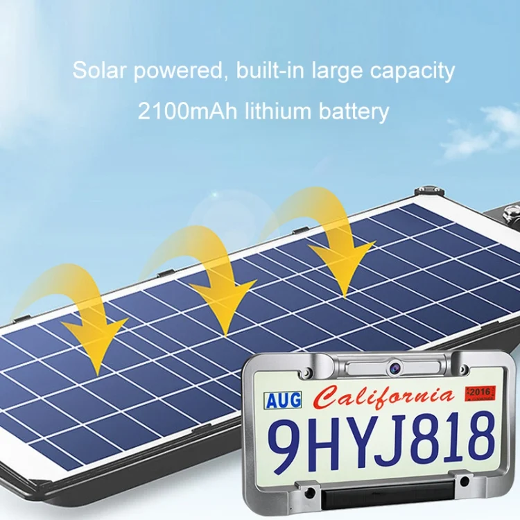 Solar License Plate Frame Wireless Transmission Reversing Camera Display