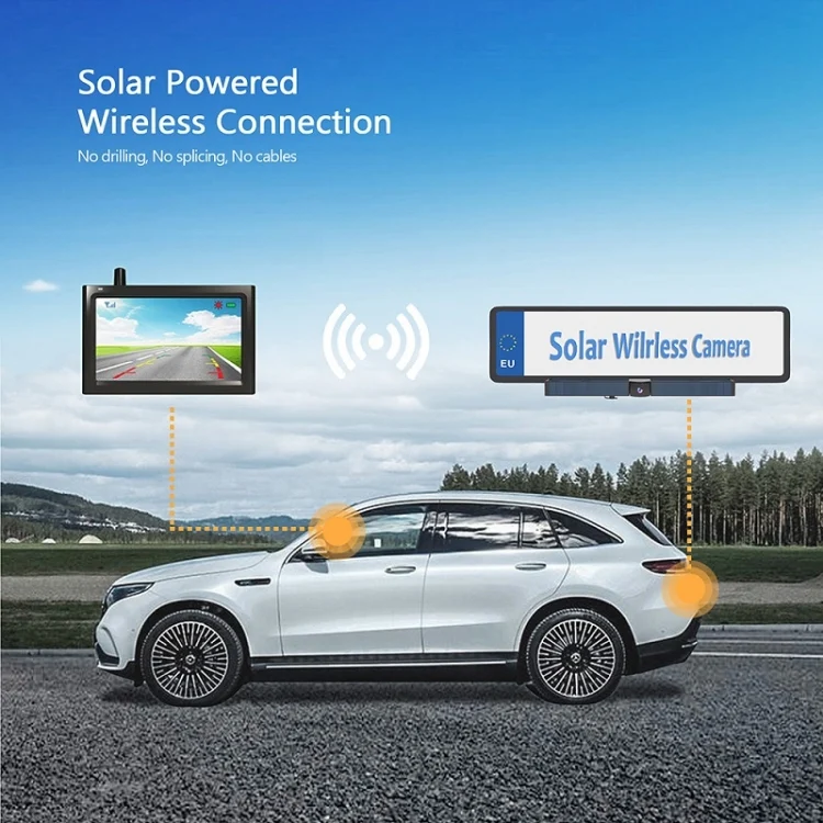 Solar Powered Rear View System Reversing Wireless Transmission Car Camera Display