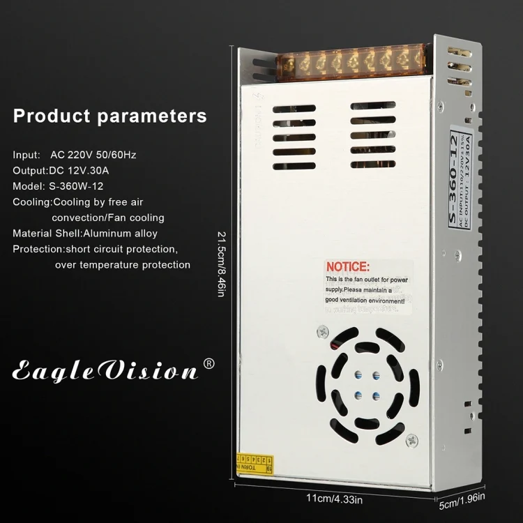 AC 220V to DC 12V 30A 360W Power Adapter AC-DC Converter Step Down Module Voltage Transformer Switch Power
