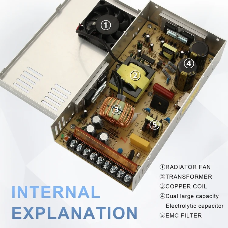 5. Widely used as the power adapter for Led strip, LED display, billboard, industrial equipment, etc. In-door use only!
