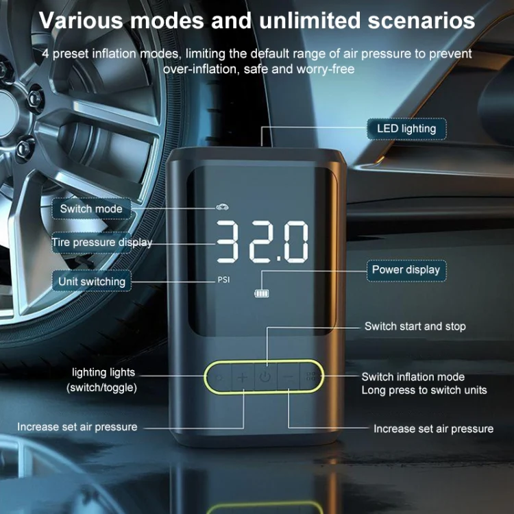 1. Full auto-stop, accurate detection, and preset tire pressure to ensure travel safety.