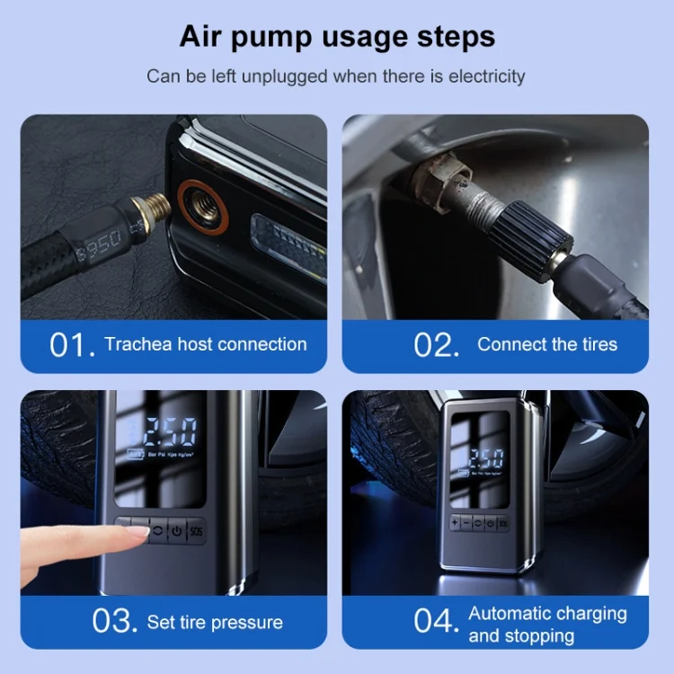 7. Supports one-click preset tire pressure, automatic stop when full, easy to use
