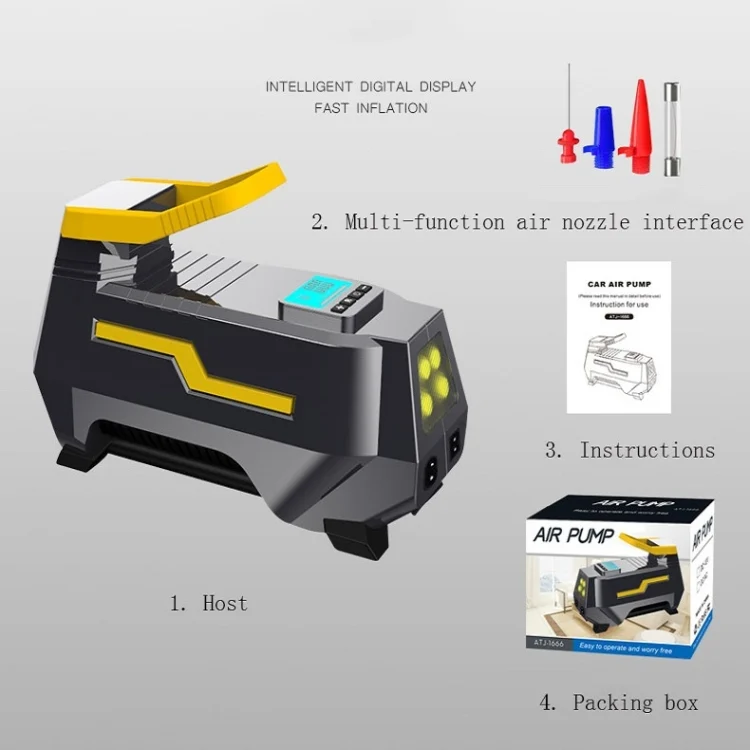 Multifunctional Vehicle-Mounted High-Power Digital Display LED Lighting Air Pump, Spec: Car 12V