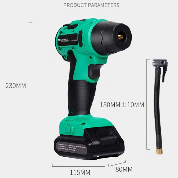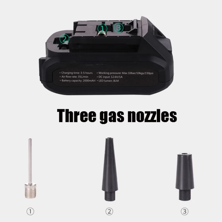 16. Features: 48-second replenishment, wireless inflation, high-definition digital display, tire pressure detection, built-in battery, LED emergency lighting, versatile
