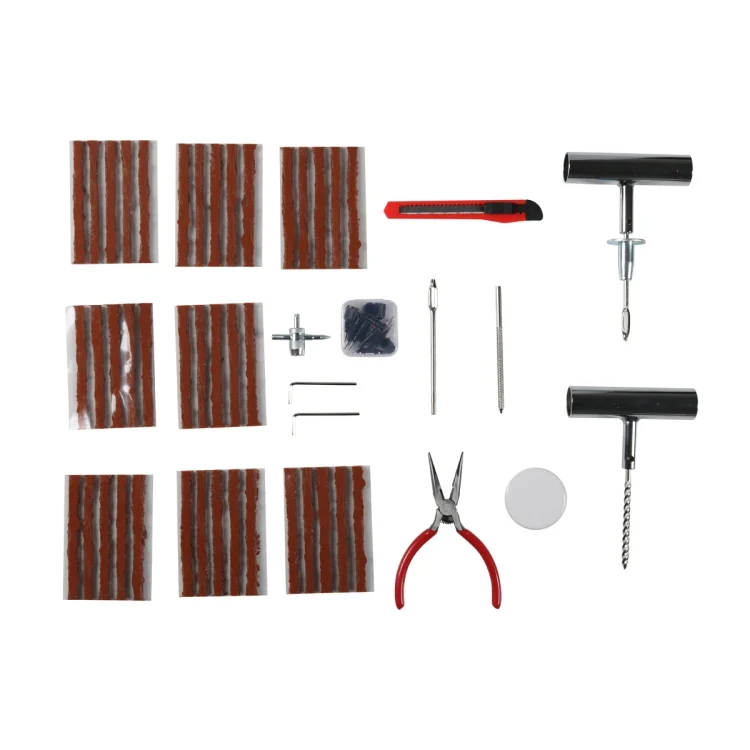 1. Comprehensive equipment: Contains various tools and accessories needed to repair tires, such as rubber strips, tire repair tools, air valve cores, air valve core tools, etc., which can cope with different types of tire damage.