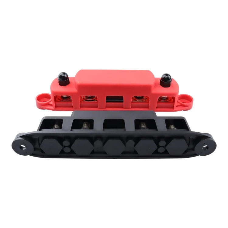 1 Pair RV Yacht M8 Single Row 4-way Power Distribution Block Busbar with Cover with 300A Fuse