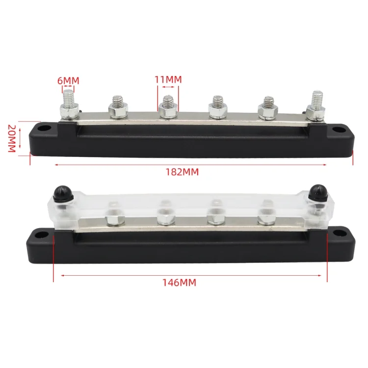 RV Yacht 150A High Current Single-row 4-way Busbar with 6pcs Terminals
