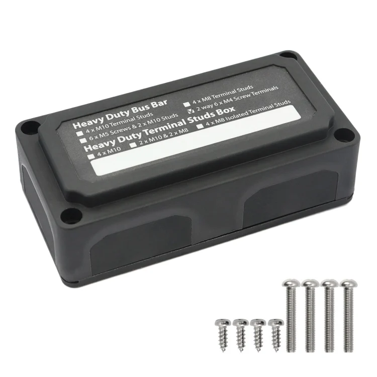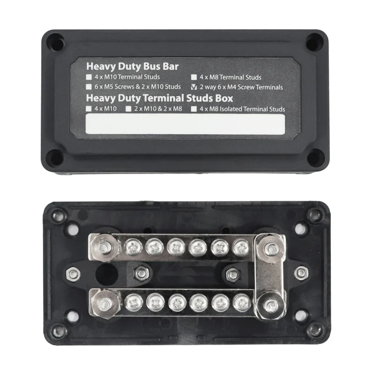 Max DC 48V 100A Heavy-Duty Module Design Bus Bar 4 M6 / 12 M4 Terminal Studs Box Busbar for Car / RV / Boat