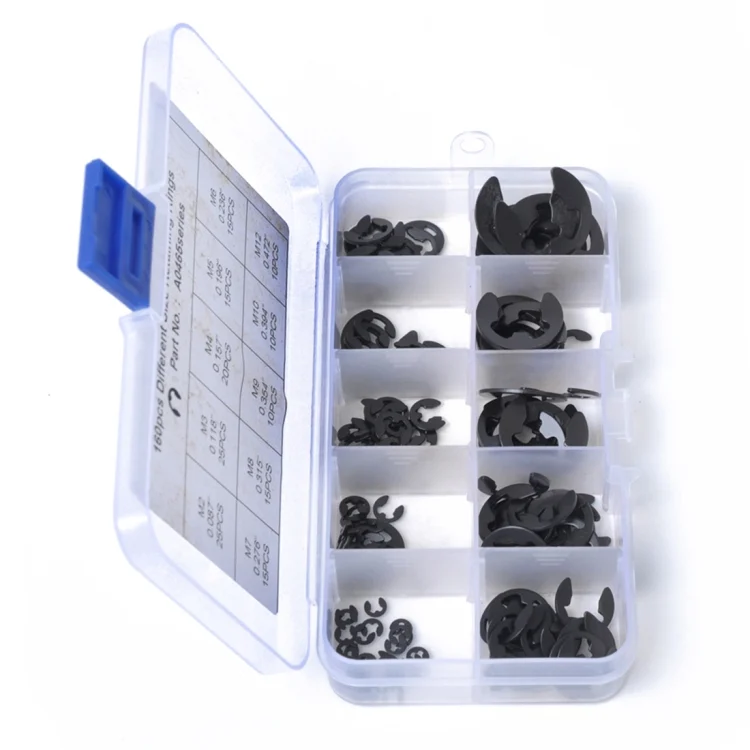 1. E-Clips are a must have in many situations and are ideal for a variety of securing tasks. Anyone who has worked with this style of clip knows they are very easy to lose when working with, so having a good selection of replacements at hand is a real good choice!