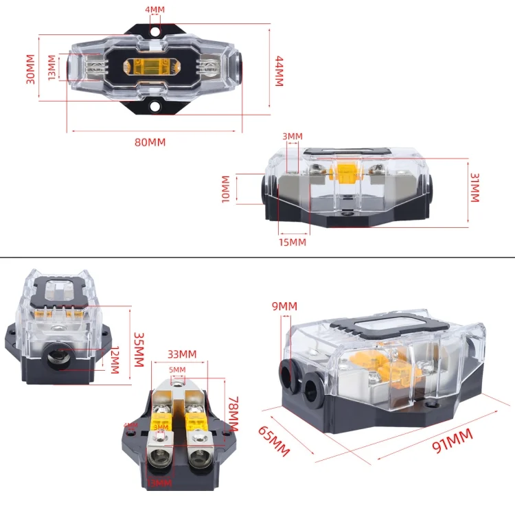 80A Car Audio Amplifier Modified Solid Brass Fuse Holder With Transparent Cover