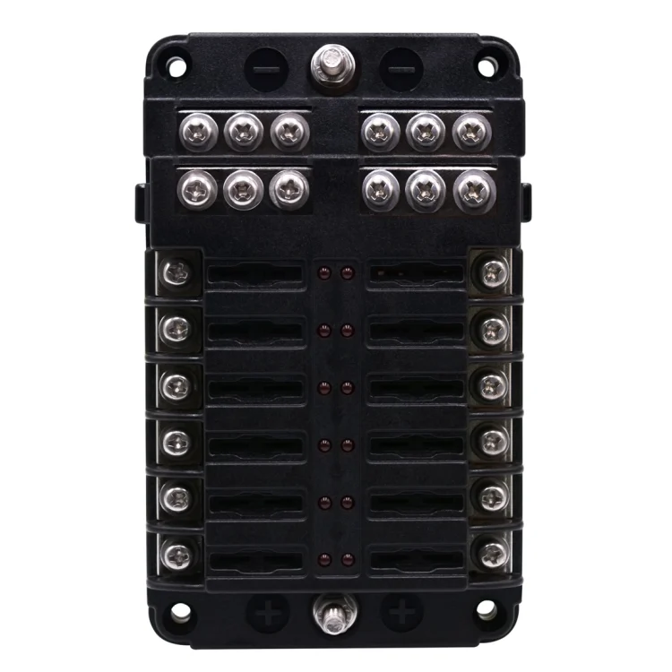 Independent Positive and Negative 1 in 12 Out 12 Way Circuit Blade Fuse Box Fuse Holder Kits with LED Warning Indicator for Auto Car Truck Boat