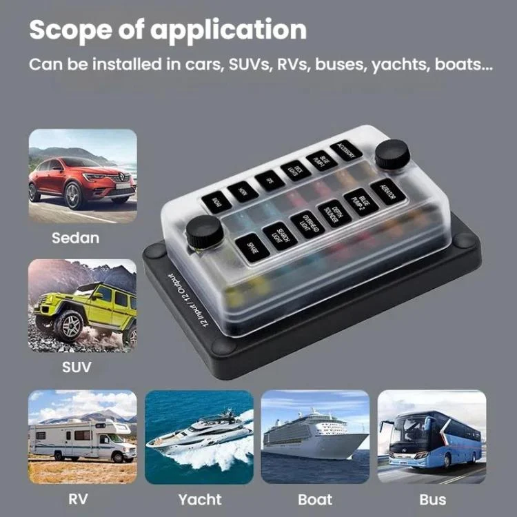 12. Scope of use: It can be directly connected to the circuit of any electrical appliance in the car/boat, such as: roof lights, car headlights, width lights, fog lights, warning lights, car refrigerators, car chargers, car fans, car TVs, etc.