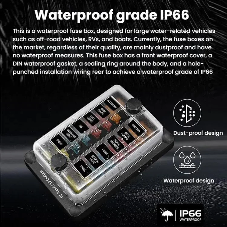 16. The product has a red LED indicator design. When the circuit is short-circuited, the red light will light up, and you can immediately know which fuse fragment is broken, which is convenient to timely determine which circuit has a problem.