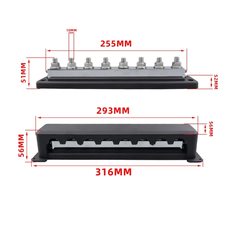 2. The bus bar has high current up to 600A, high electrical conductivity, high mechanical strength, and corrosion resistance. The battery distribution block is made of high-quality tin-plated brass and has good electrical conductivity.