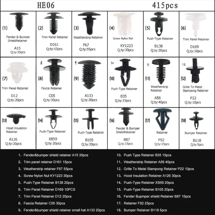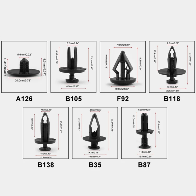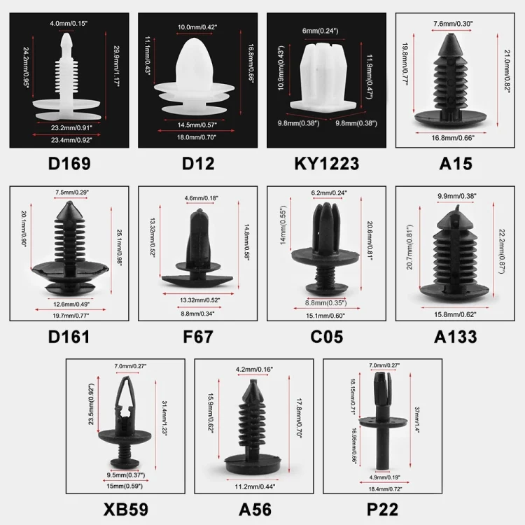 1. Theses push clips are widely used for trim panel clips, door trim clips, door panel clips, bumper clips, Fender clips, engine cover and splash shield retainers replacement.