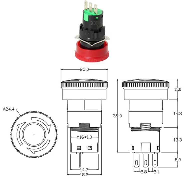 16mm Mounting Hole Emergency Stop Switch Mushroom Type Self-Locking Pushbutton Switches