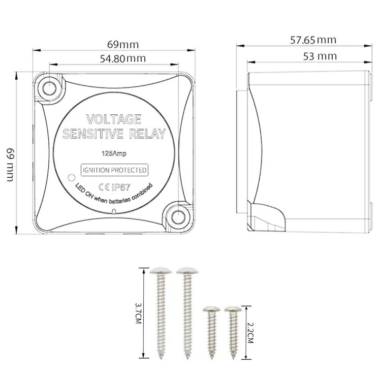 6. The optional storage mode can achieve zero power consumption when the engine is turned off (when the device (VSR) function is not needed, you can cut the red wire and connect an ON-OFF switch to control the power on and off of this device. usually such as boats and yachts. use when not in use for a long time. When not in use for a long time, turn off the VSR to achieve zero power consumption)