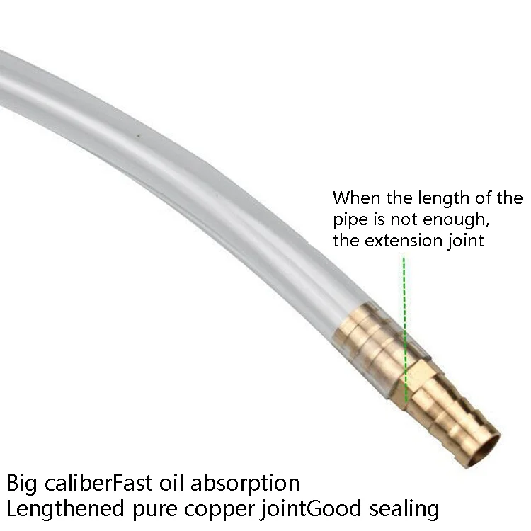 5. Features: when the length of the pipe is not enough, you can use an extension connector, a large diameter, fast oil absorption, an extension of pure copper connector, good sealing, flow switch, can control the flow rate, with a fixing clip, easy to fix the hose, easy to use