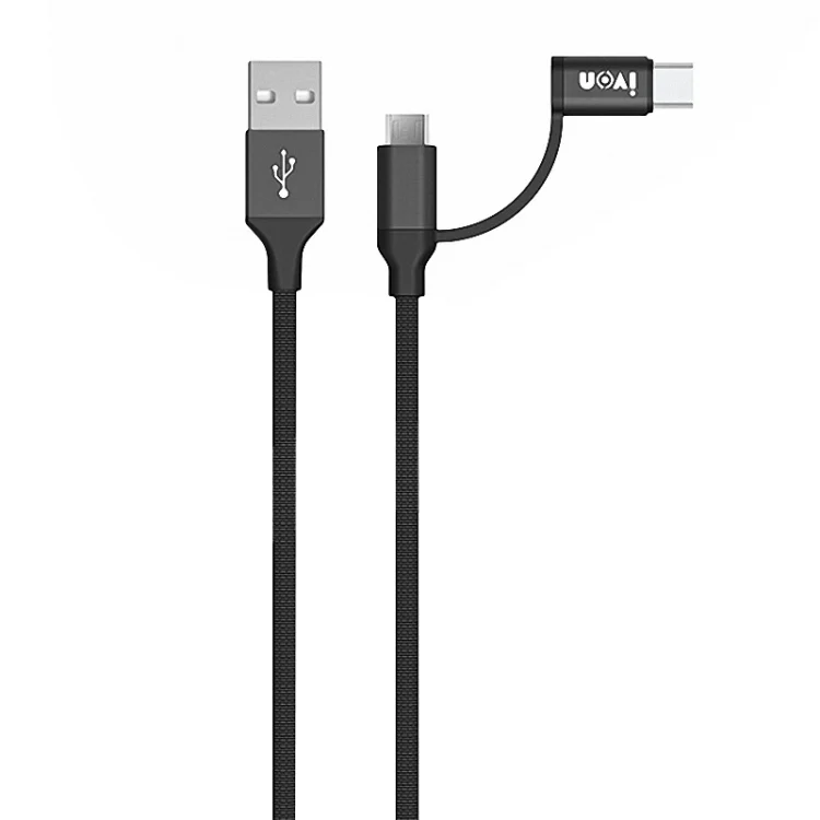 IVON CA52 2.4A USB to Type-C + Micro USB 2 in 1 Charging Sync Data Cable, Length: 1m, Type-C + Micro USB