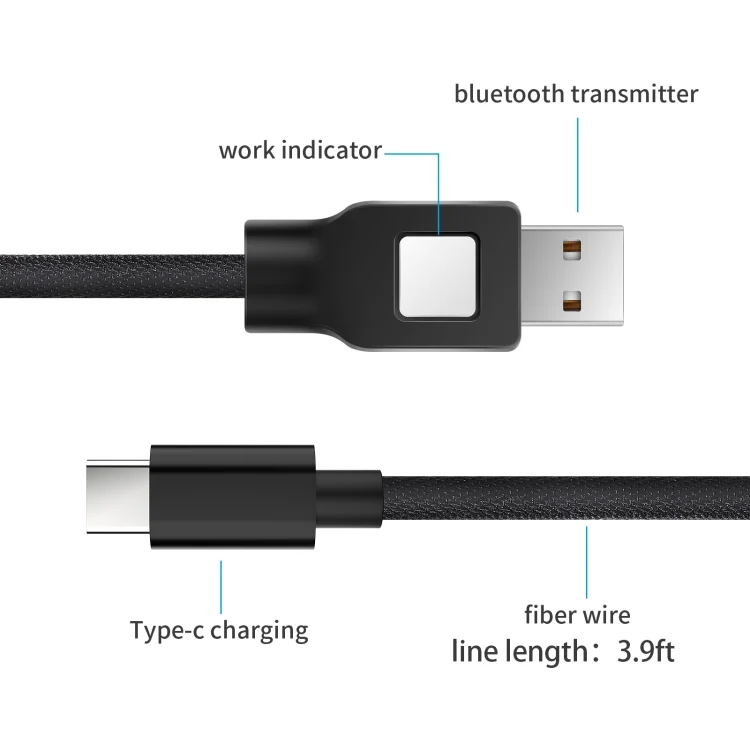 ZF170 1.2m USB to Type-C Charging Data Cable with Bluetooth Transmitter Function
