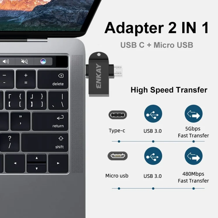 ENKAY ENK-AT112 2 in 1 Type-C + Micro USB to USB 3.0 Aluminium Alloy OTG Adapter