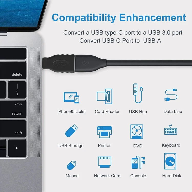 4. This adapter is used to connect your USB-C / Type-C Port of your OTG Phone to the USB Type A plug of your compatible USB device.