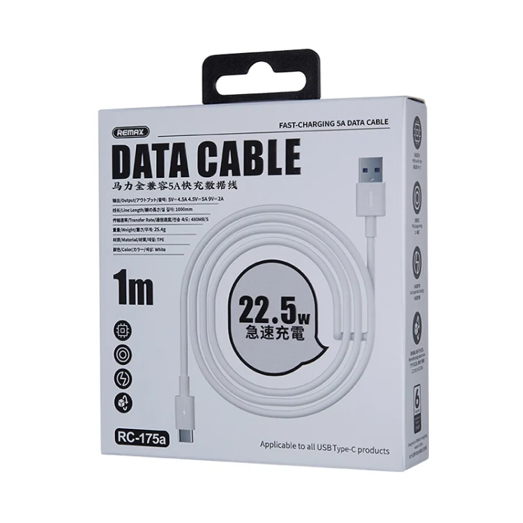 REMAX Marlik Series RC-175a 22.5W 5A USB to USB-C / Type-C Interface Fully Compatible Fast Charging Data Cable, Cable Length: 1m, 1m