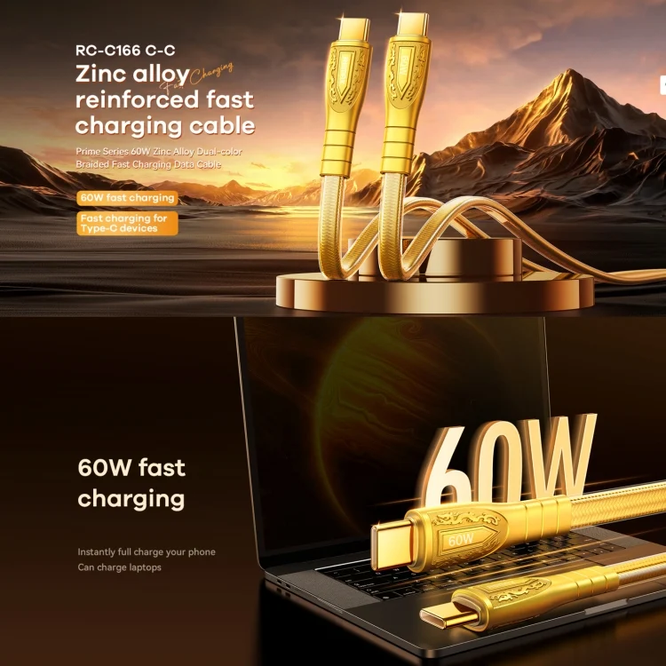 REMAX RC-C166 Prime 1.2m 60W Type-C to Type-C Braided Fast Charging Cable, RC-C166