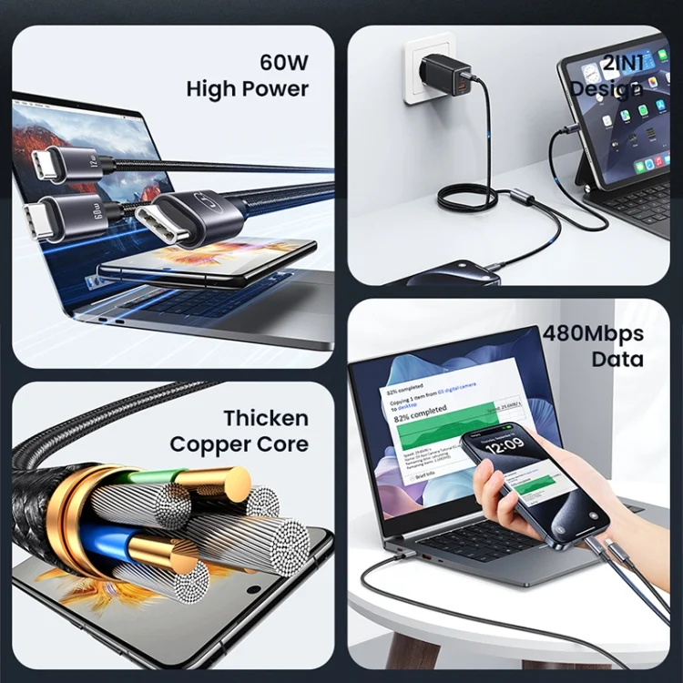 USAMS SJ740 1.2m 72W 2 in 1 Type-C Fast Charging Cable, SJ740