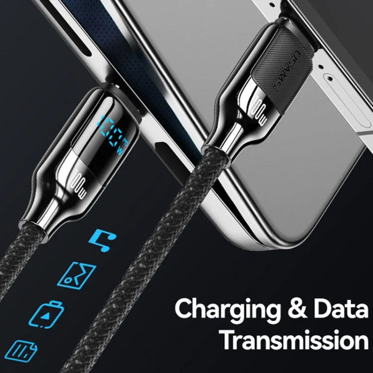 USAMS SJ742 100W USB-C / Type-C to USB-C / Type-C Zinc Alloy Digital Display Fast Data Cable, Length: 1.2m, SJ742USB01, SJ742USB02
