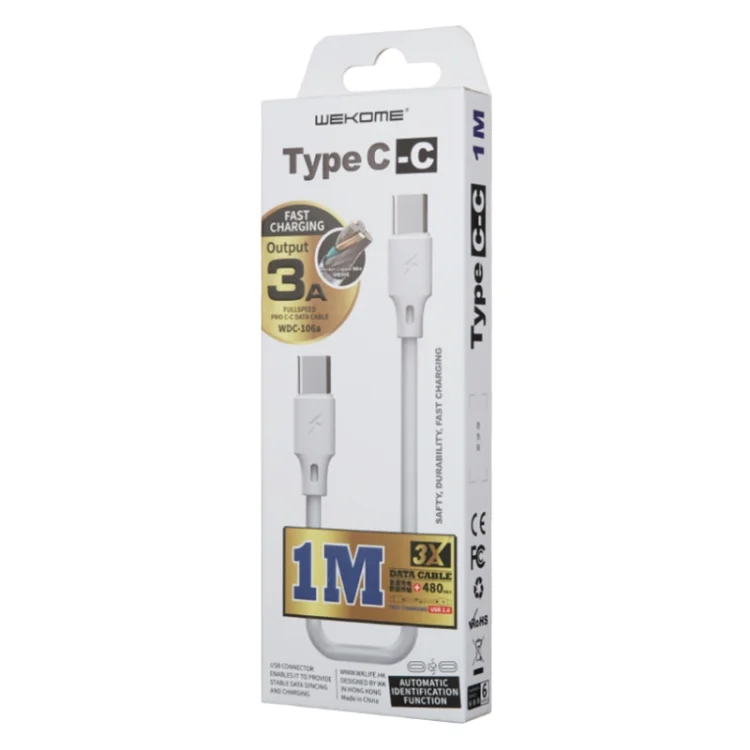 WK WDC-106 3A Type-C / USB-C to Type-C / USB-C Full Speed Charging Data Cable, Length: 1m