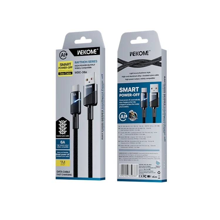 WK WDC-36a Intelligent Power-off 1m 6A USB to Type-C Fast Charging Data Cable, WDC-36a