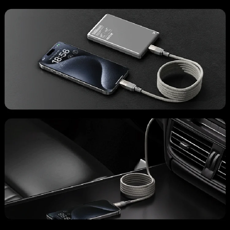 3. Magnetic cable design, 500N super strong magnetic force, automatically rolls up for storage, no mess, no tangling.