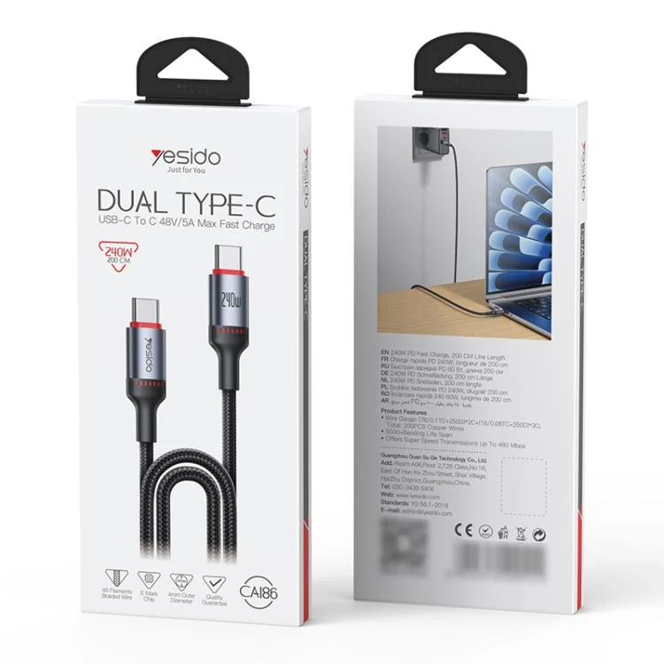 Yesido CA186 240W Type-C to Type-C Aluminum Alloy Data Cable, Length: 2m, CA186