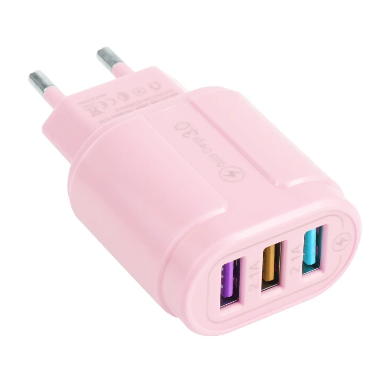 13-222 QC3.0 USB + 2.1A Dual USB Ports Macarons Travel Charger,, EU Plug