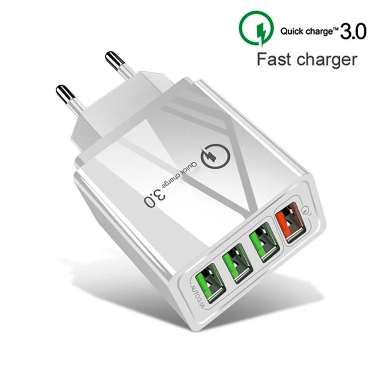 2 in 1 1m USB to Micro USB Data Cable + 30W QC 3.0 4 USB Interfaces Mobile Phone Tablet PC Universal Quick Charger Travel Charger Set, EU Plug, Micro USB Set EU Plug