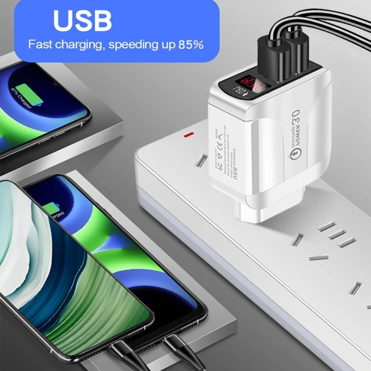 F002C QC3.0 USB + USB 2.0 Fast Charger with LED Digital Display for Mobile Phones and Tablets, EU Plug, EU Plug