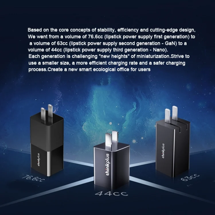 3. Based on the core concepts of stable, efficient and cutting-edge design, we have gone from a volume of 76.6cc (lipstick power supply 1st generation) to a volume of 63cc (lipstick power supply 2nd generation – GaN) to a volume of 44cc (lipstick power supply 3rd generation – Nano), striving to use smaller Smaller, more efficient charging speed and safer charging process create a smart ecological office for users