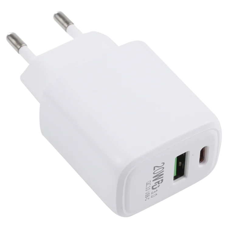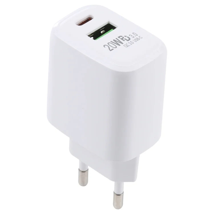 LZ-215A+C 20W QC 3.0 USB + PD 3.0 USB-C / Type-C Fast Charging Travel Charger, EU Plug