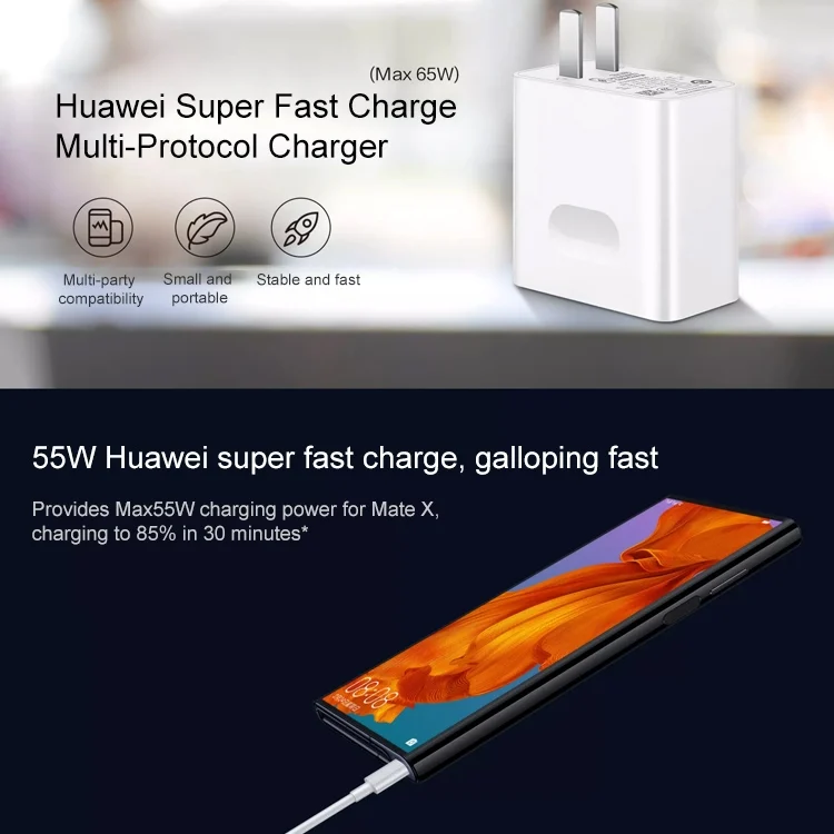 Original Huawei USB-C / Type-C Super Fast Charge Multi-Protocol Charger (Max 65W) with 1m 5A USB-C / Type-C to USB-C / Type-C Data Cable, US Plug, with Type-C to Type-C Cable
