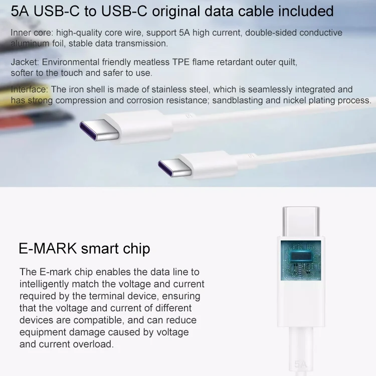 6. Comes with 1m 5A Type-C to Type-C data cable; the data cable supports charging and data transmission