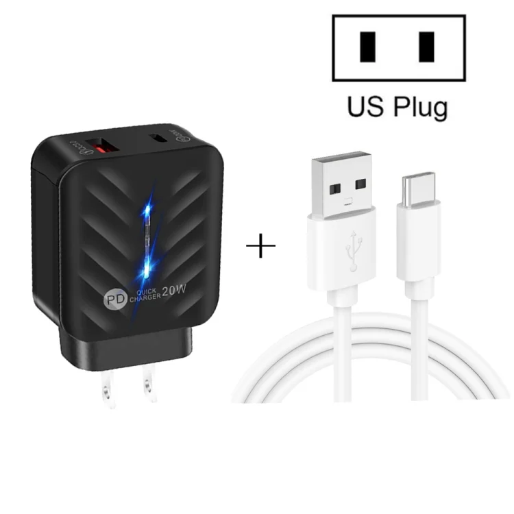 PD03 20W PD3.0 + QC3.0 USB Charger with USB to Type-C Data Cable, US Plug, US Plug, US Plug + USB to Type-C Cable