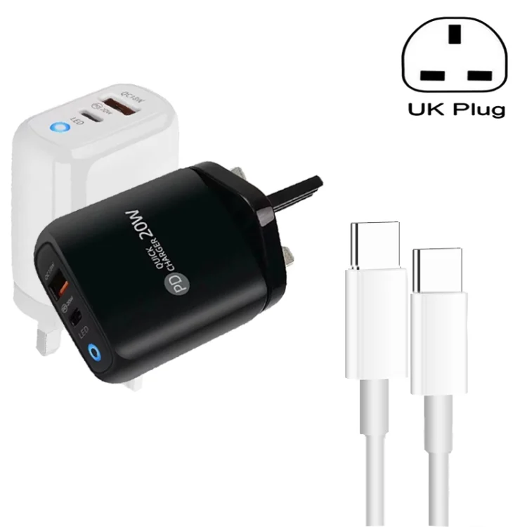 PD04 Type-C + USB Mobile Phone Charger with Type-C to Type-C Cable, UK Plug, UK Plug + Type-C to Type-C Cable