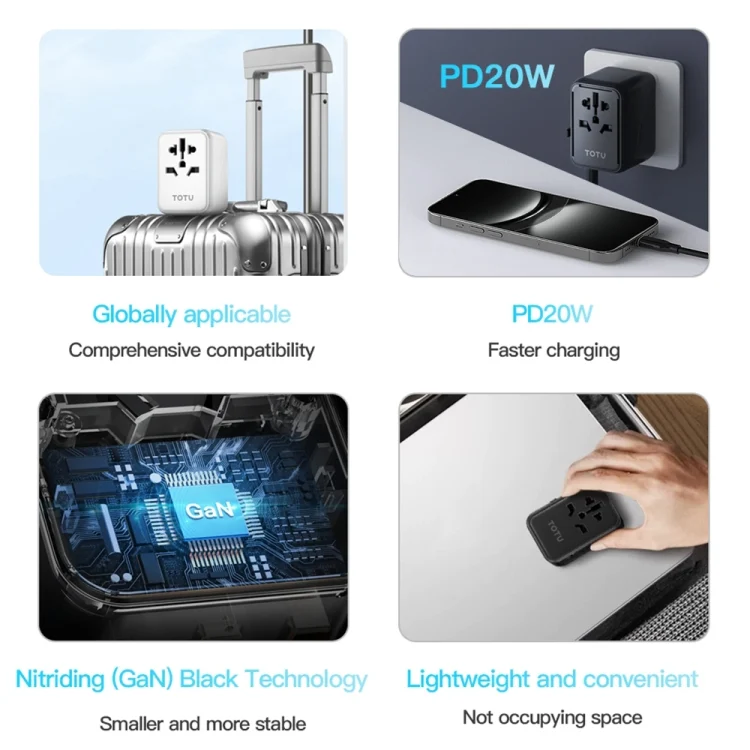 TOTU 635DQ PD 20W Universal Travel Fast Charger Power Adapter