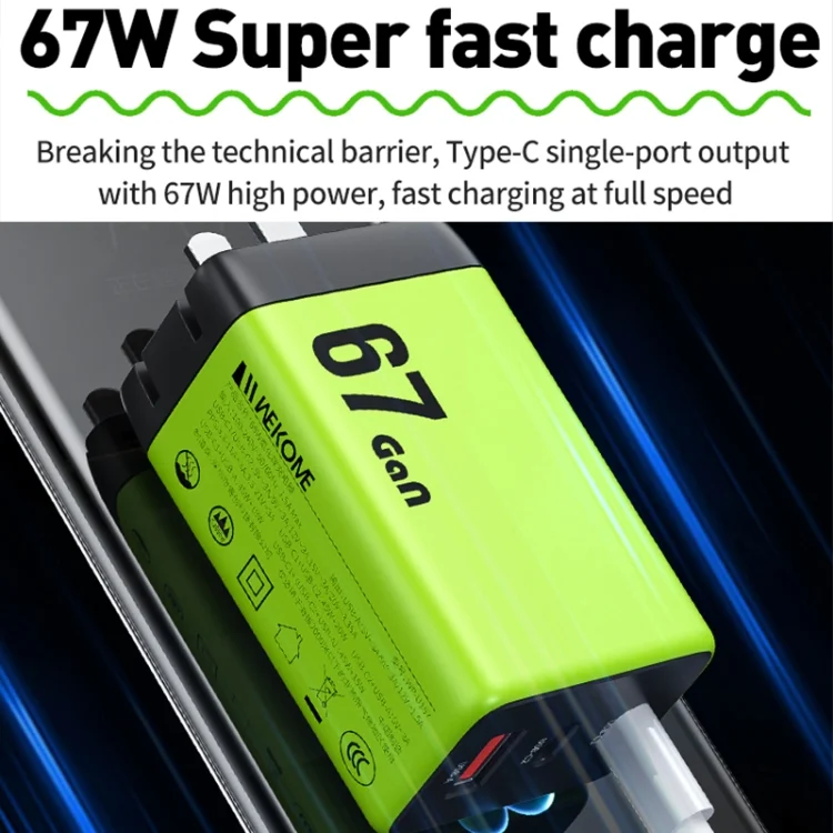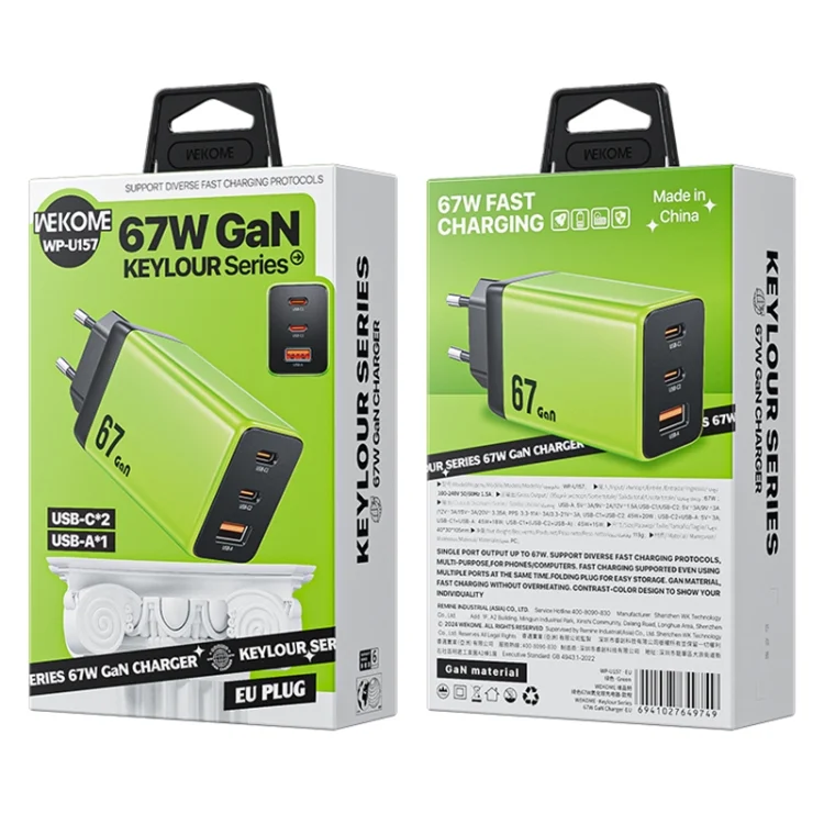 WK WP-U157 67W USB-C / Type-Cx2, USB GaN Fast Charger, EU Plug, UK Plug