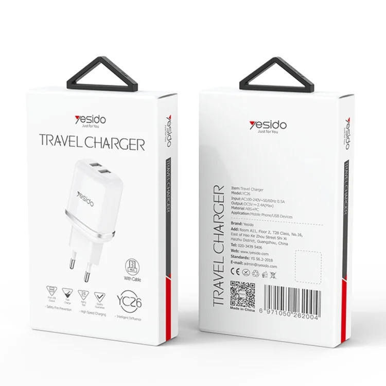 Yesido YC-26 USB Dual Ports Travel Charger, YC-26